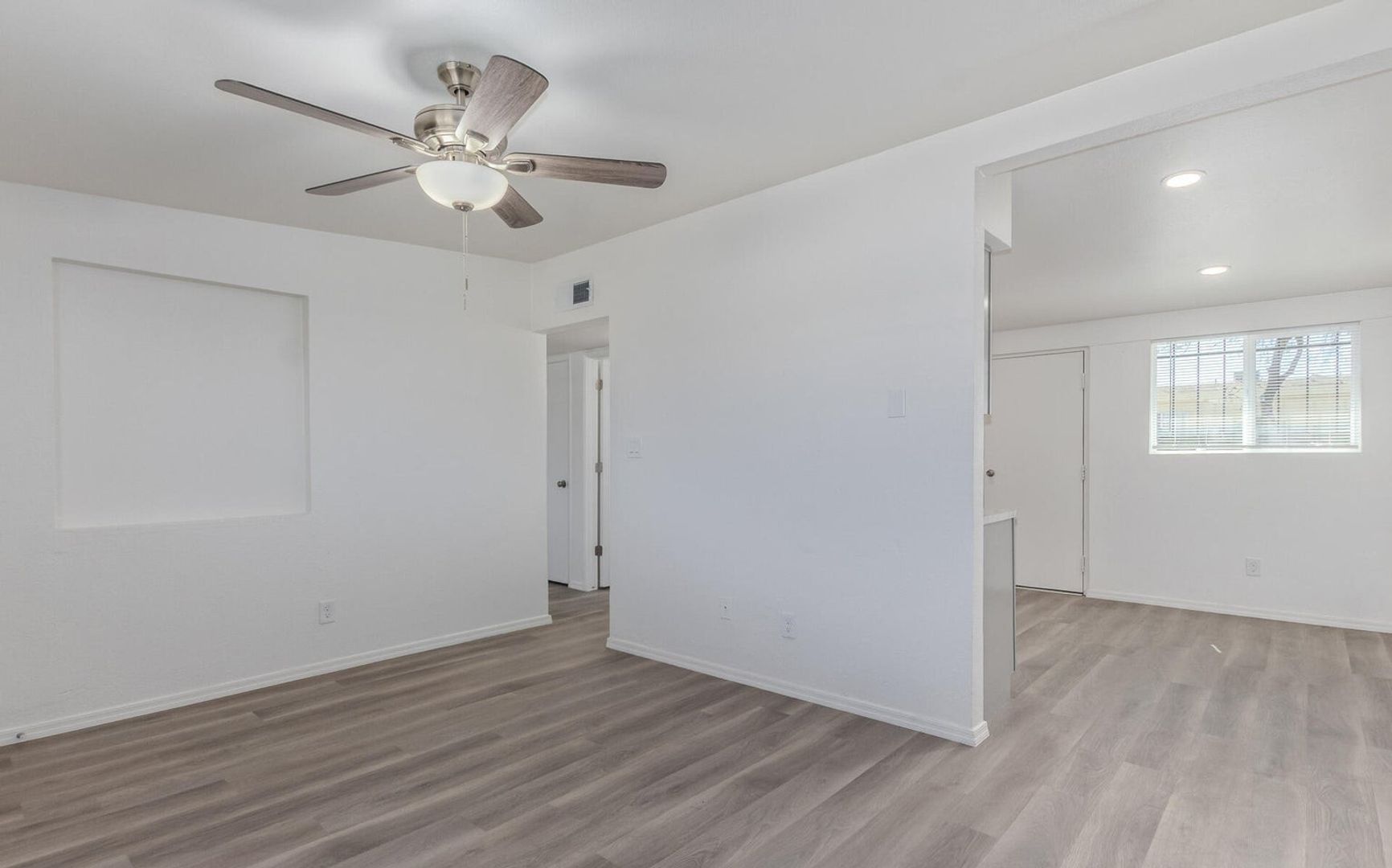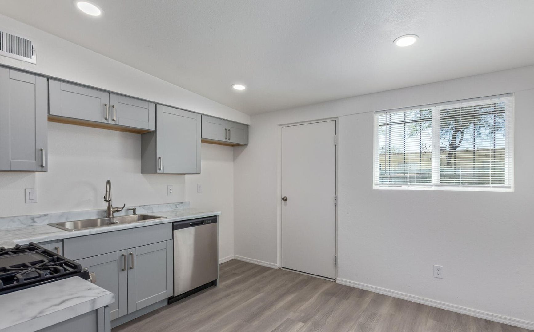 Discover this newly renovated 2-bedroom, 1-bath apartment in a central Tucson location. The unit features a spacious layout with vinyl floors, ceiling fans, central A/C, and stainless steel appliances including a garbage disposal. Laundry hookups are provided for convenience, and off-street parking and a fenced yard add practicality. Located near a park, the property combines recent updates with easy access to local amenities.