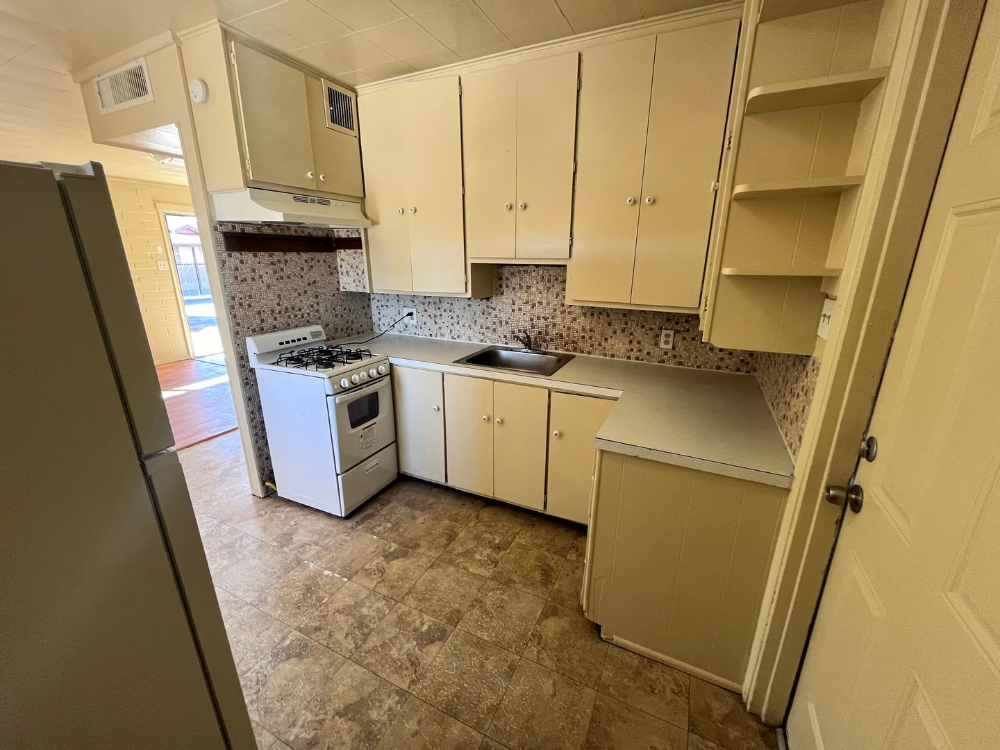2 Bedroom/ 1 bathroom townhome- Features include: Single story unit, A/C, vinyl floors throughout, fenced yard, washer/dryer hookups, refrigerator and gas range.