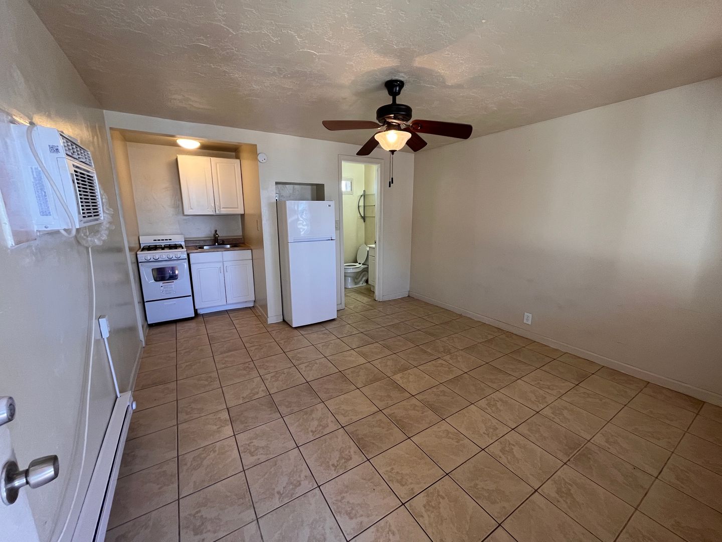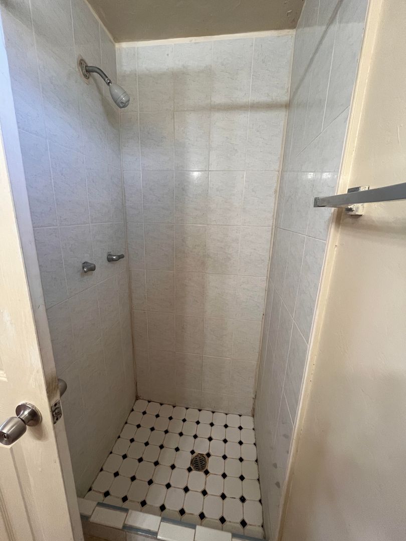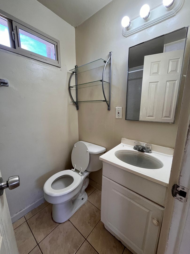 Studio/ 1 bathroom apartment- Features include: 1st floor unit, A/C, tile floors throughout, walk in shower, refrigerator and electric range.