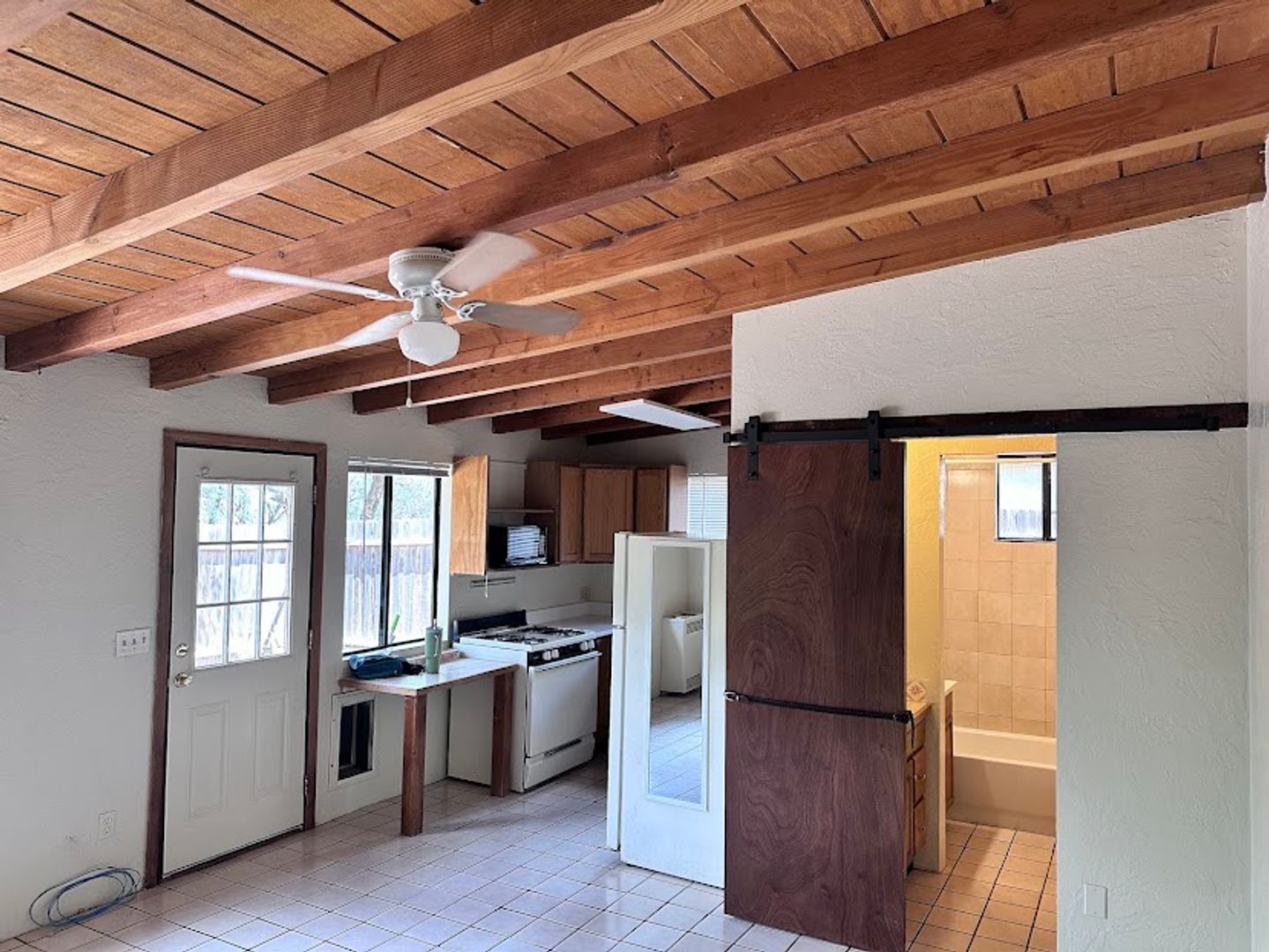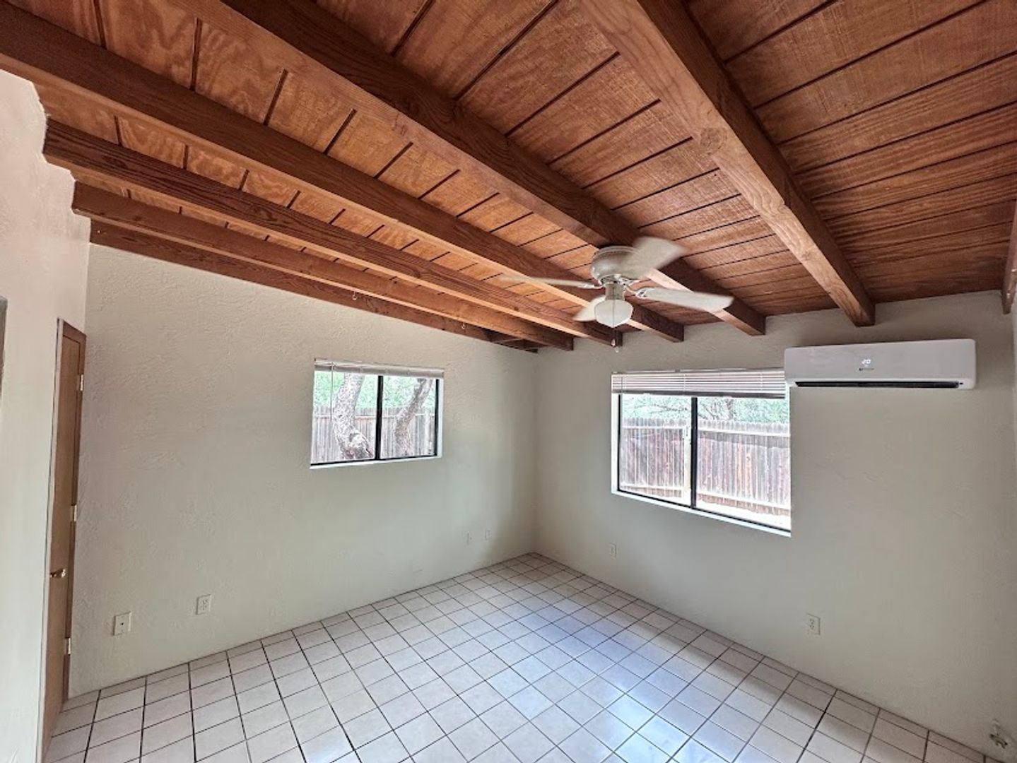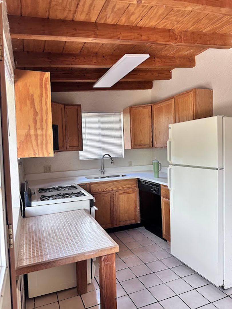 Inside, you'll find warm tile floors, wood beam ceilings, and a cozy fireplace — the perfect Southwest touches to make you feel right at home. The kitchen comes equipped with a gas range and refrigerator, ideal for quiet evenings or entertaining guests.