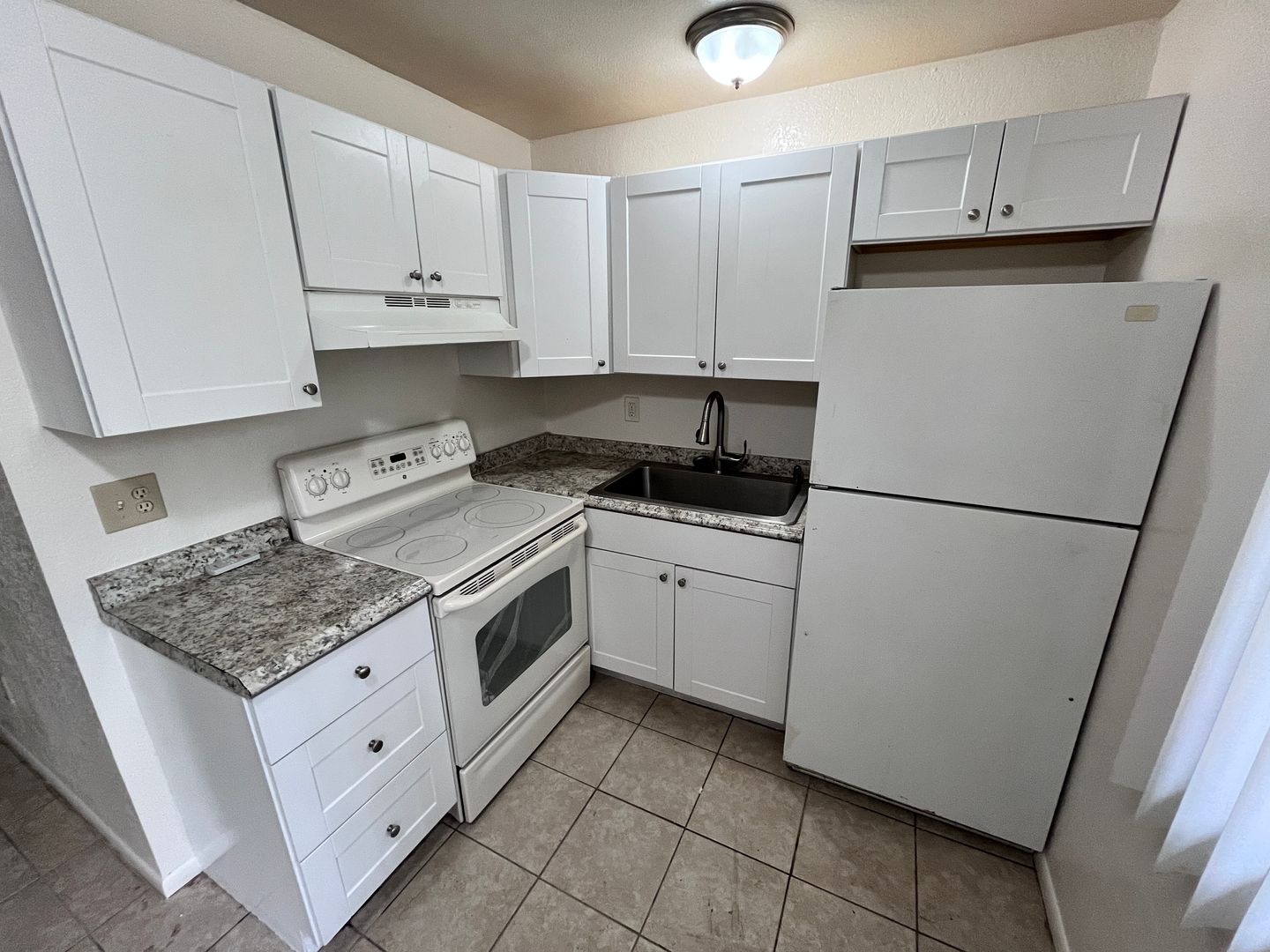 1 bedroom/ 1 bathroom apartment- Features include: 1st floor unit with fenced yard, large bedroom closet, A/C, tile floors w/ carpet only in bedroom, refrigerator and electric range.