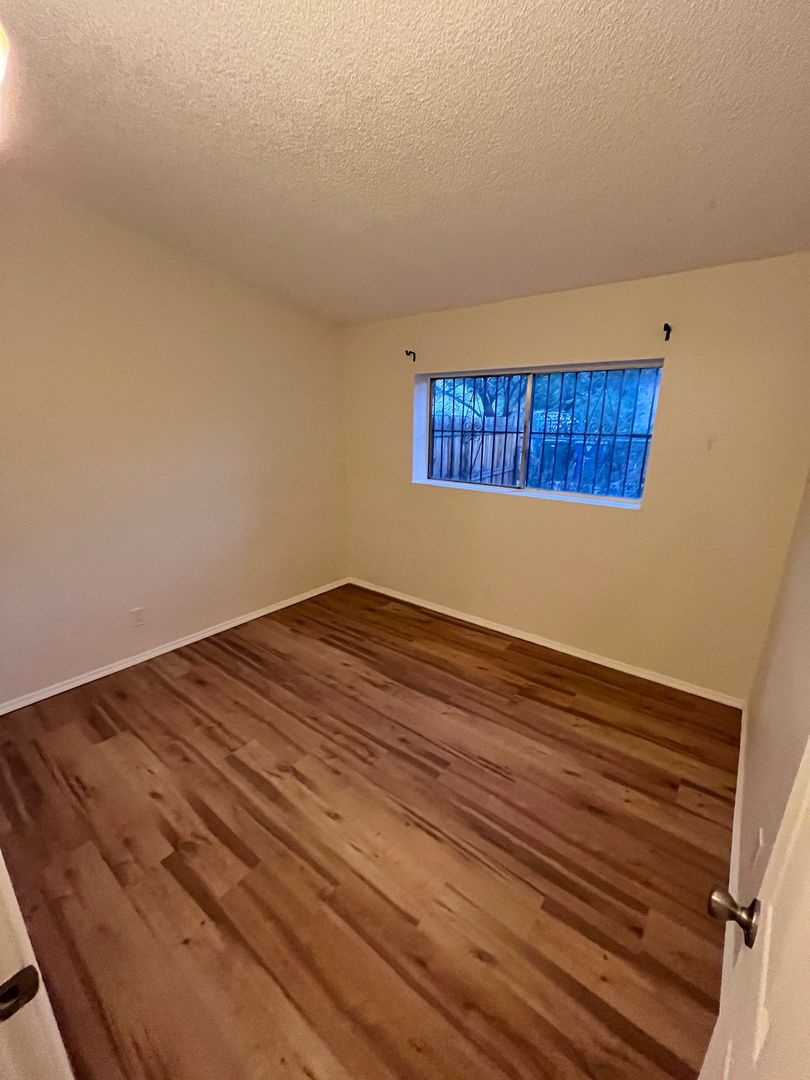 2 Bedroom/ 1 bathroom townhome- Features include: single story unit, A/C, fenced yard, refrigerator, dishwasher, microwave and stove. Fenced in yard, plank flooring, and solar panels for savings on electric bill!