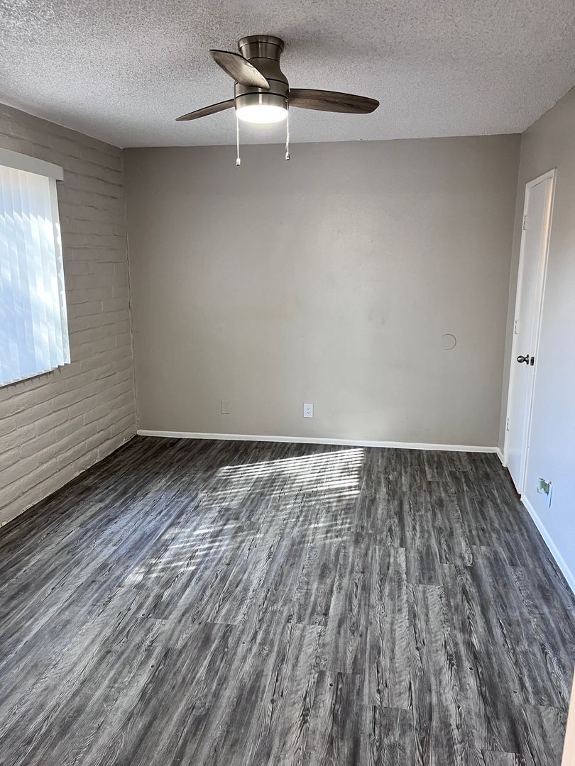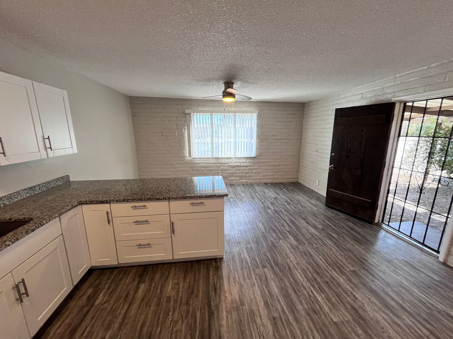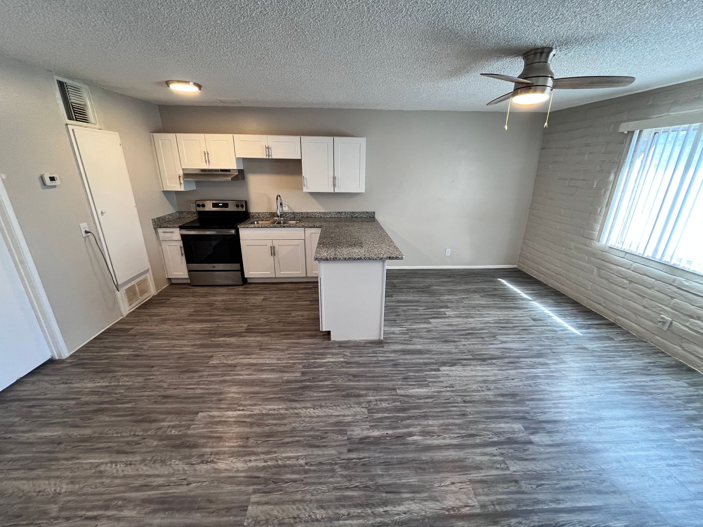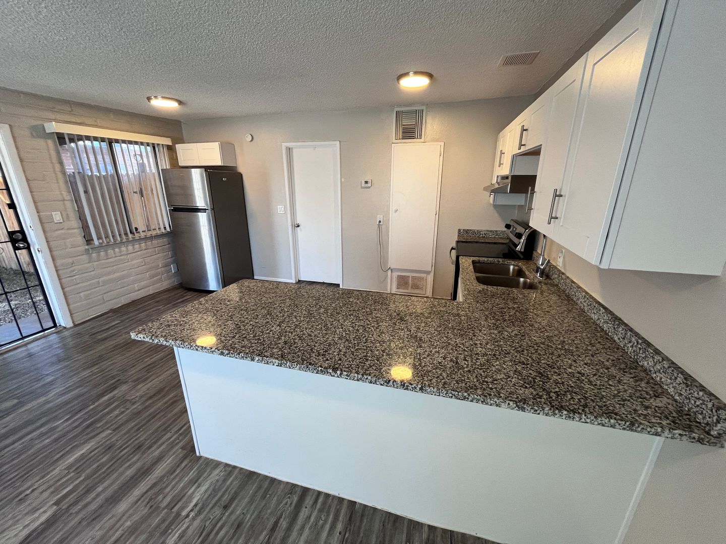 1 Bedroom/ 1 bathroom townhome- Features include: Single story unit, A/C, walk in closet and fenced yard. Beautifully renovated with plank floors throughout, granite counter tops and stainless steel refrigerator & electric range. WIFI included in rent!!