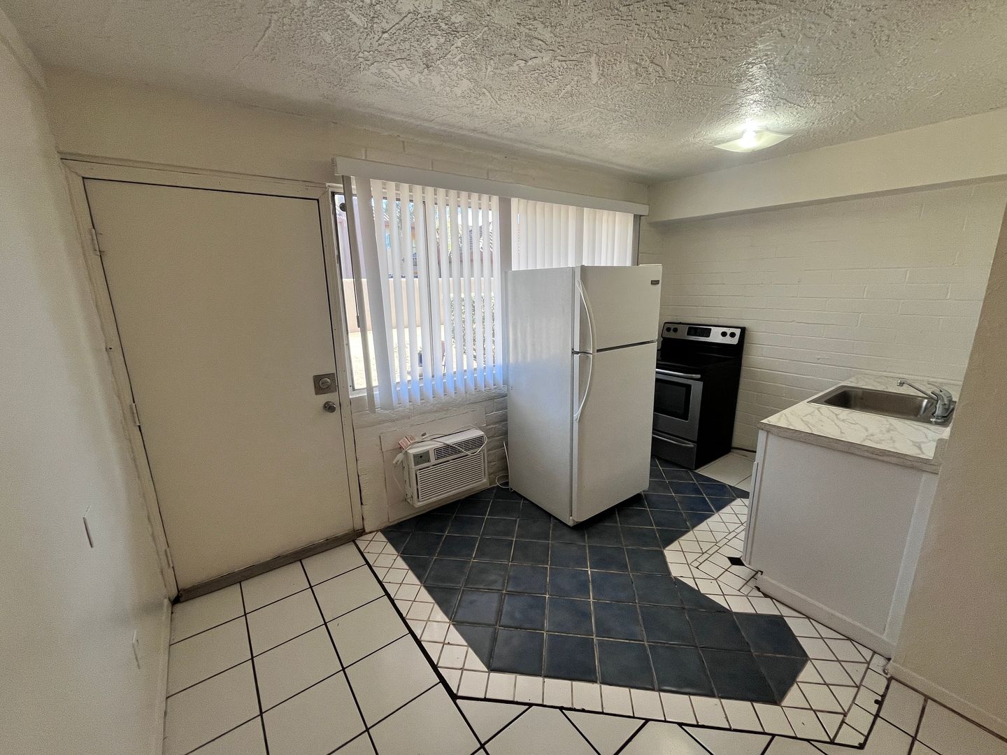 Studio/ 1 bathroom apartment unit- Features include: first floor unit, A/C, no carpet, refrigerator & electric range