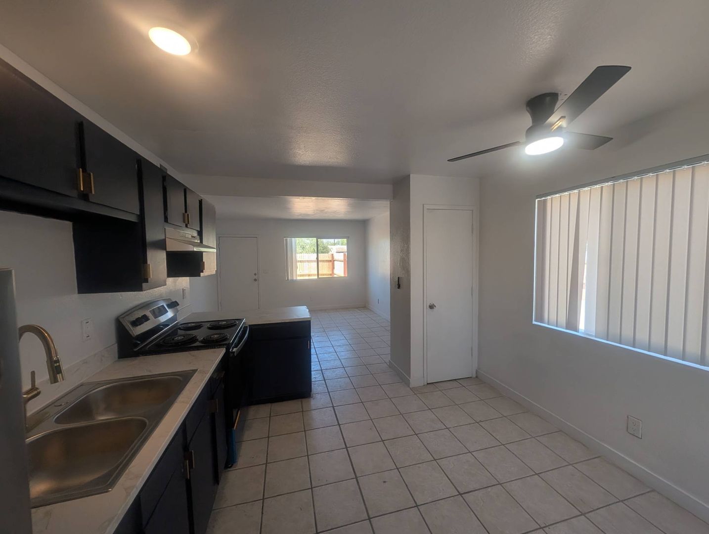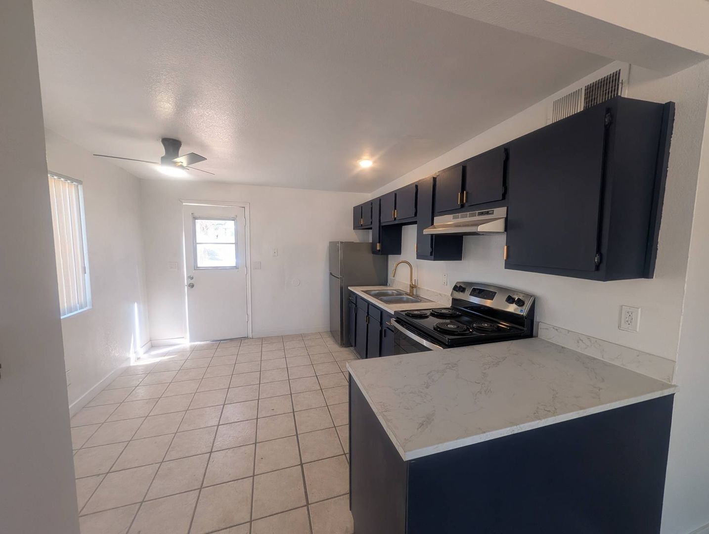 Recently updated single-story stand-alone unit. Features include beautiful laminate and tile flooring throughout (no carpet!) and a modern kitchen with refrigerator and electric range.