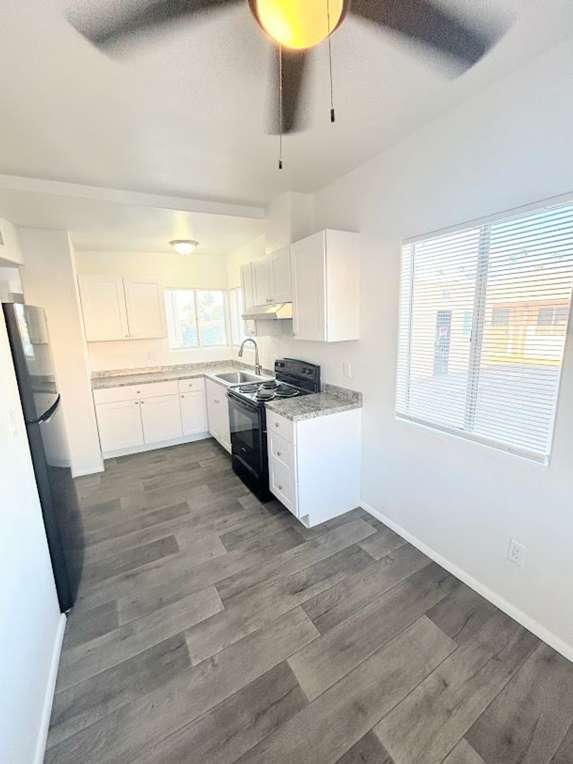 HOLIDAY MOVE IN SPECIAL! Renovated 3 bedroom/ 1 bathroom single story unit-features include: fridge & stove and no carpet! Onsite coin laundry, ceiling fans and evap cooling. Minutes from I-10, restaurants and across the street from E C Nash Elementary School!
