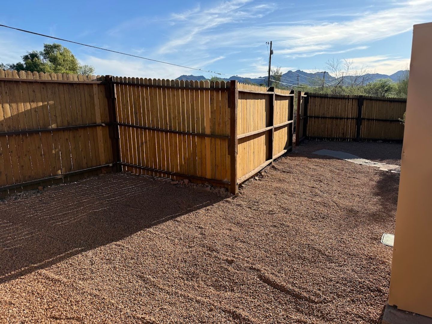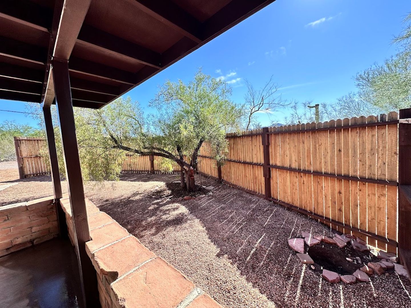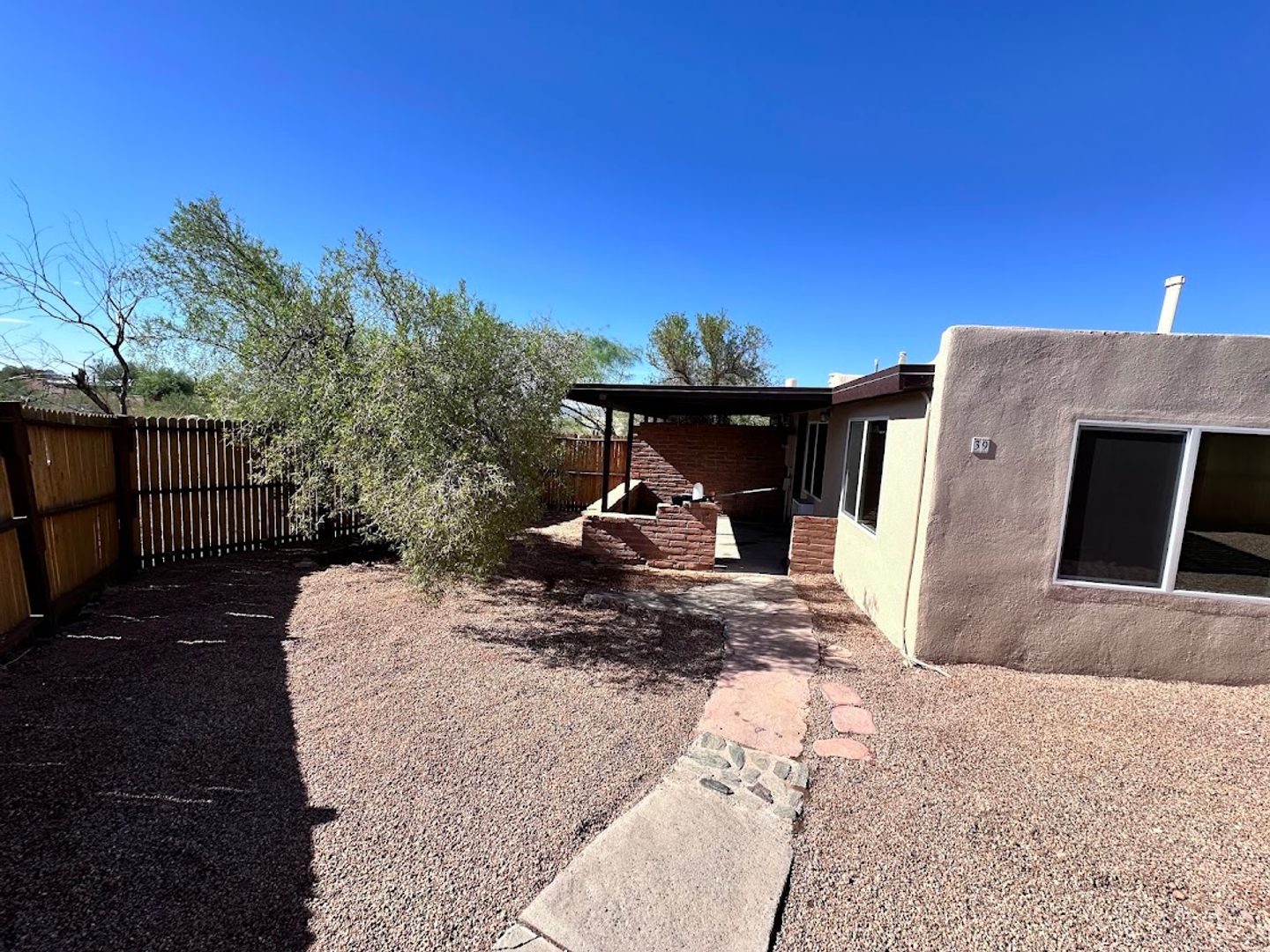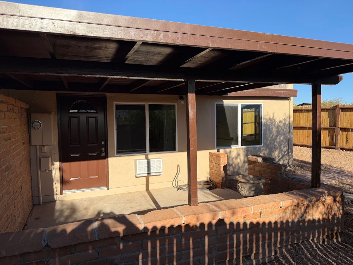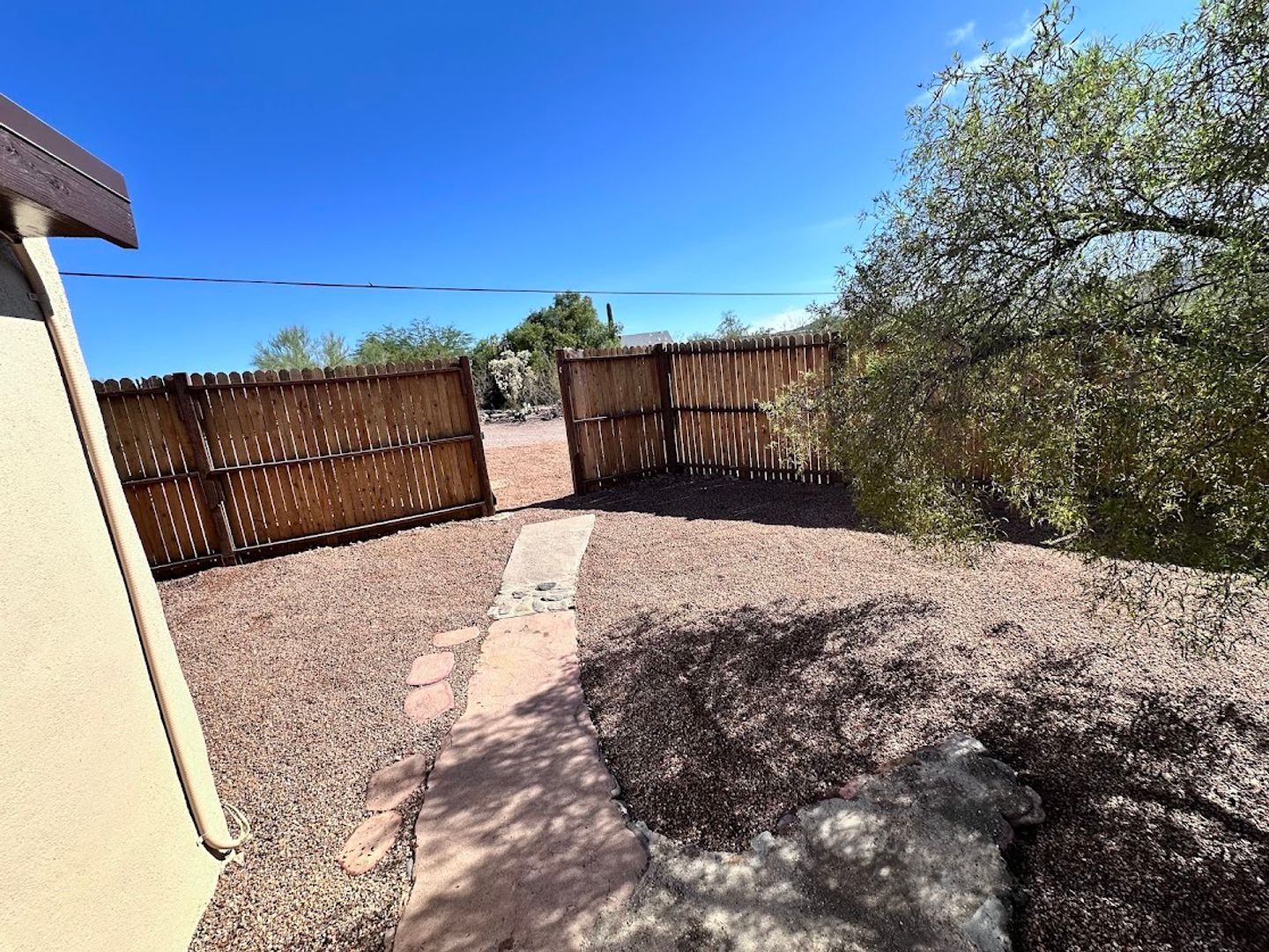 2 Bedroom/ 1 bathroom tucked away townhome- Features include: recently renovated, single story, mini splits, tile floors throughout, refrigerator and gas range. Large fenced in yard around entire unit, ceiling fans and large covered patio.