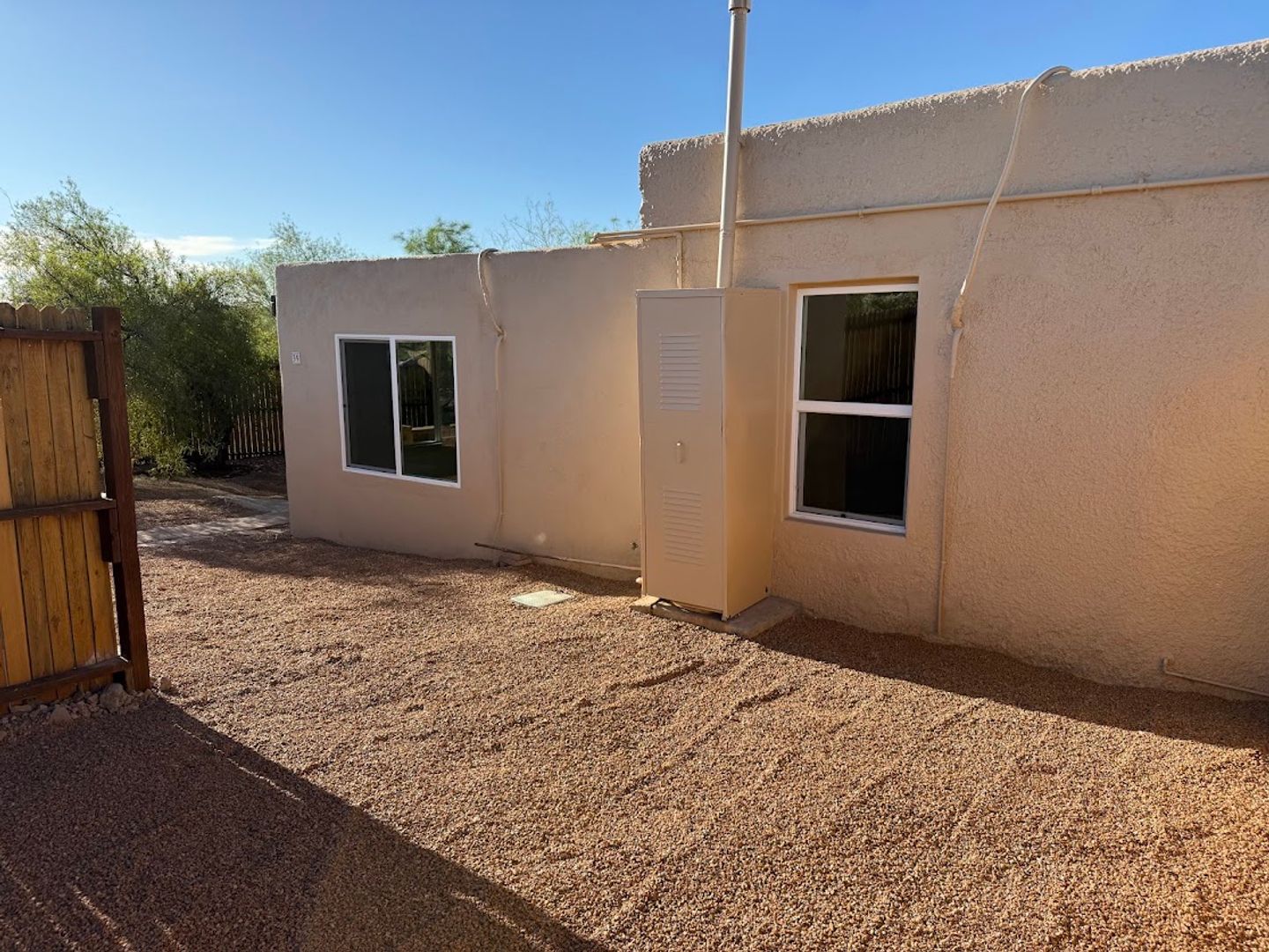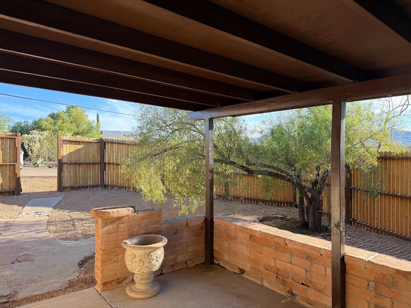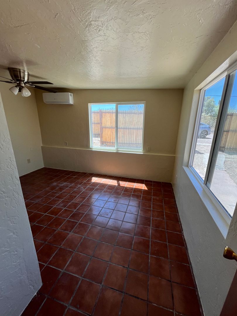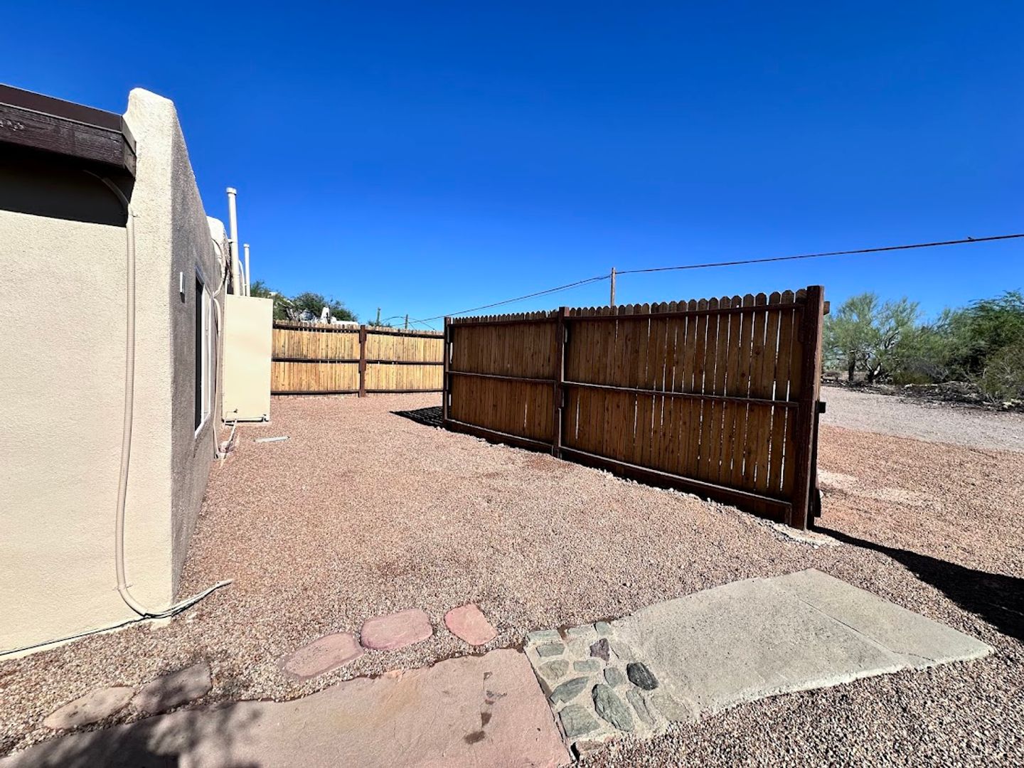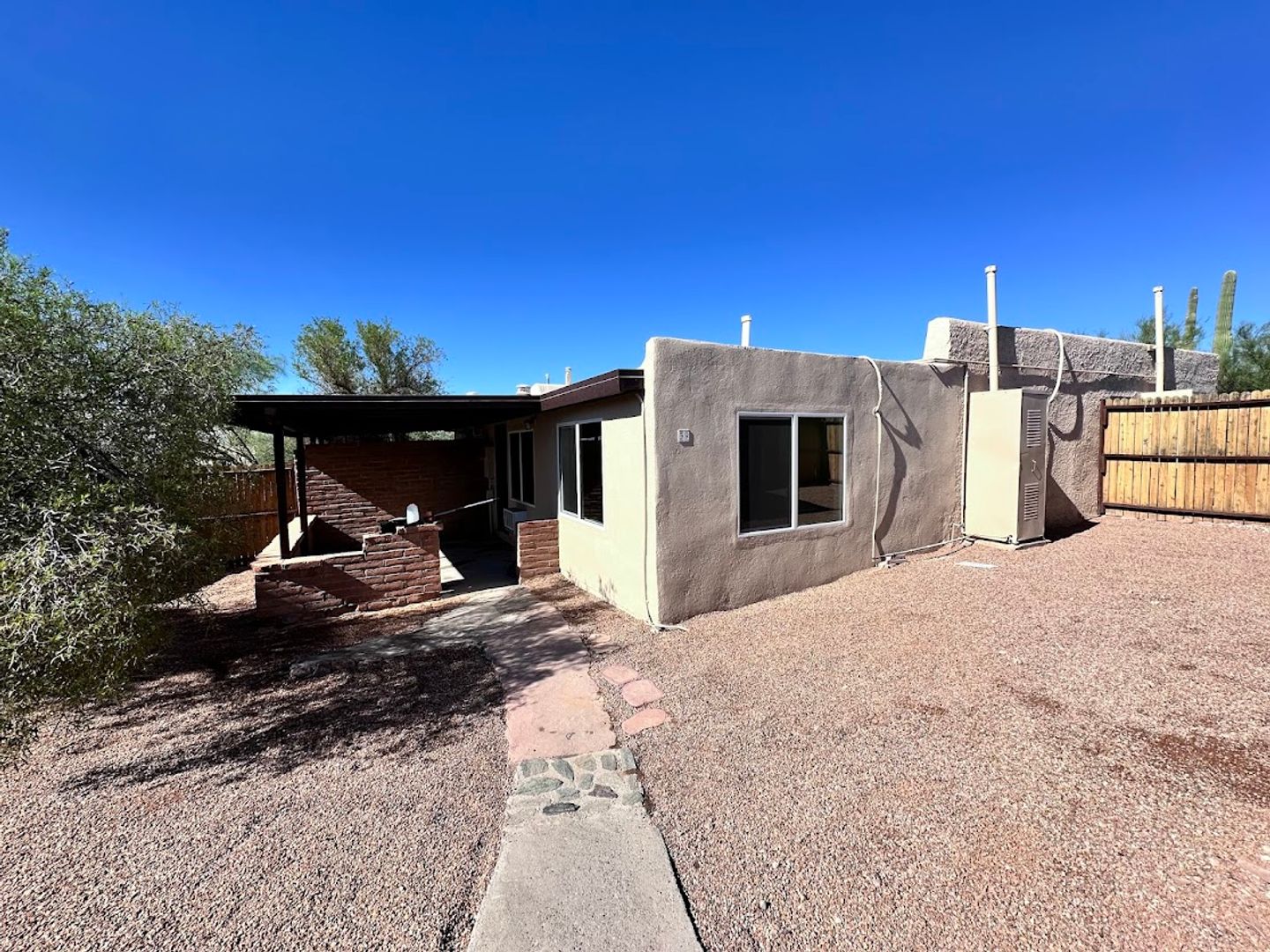 2 Bedroom/ 1 bathroom tucked away townhome- Features include: recently renovated, single story, mini splits, tile floors throughout, refrigerator and gas range. Large fenced in yard around entire unit, ceiling fans and large covered patio.