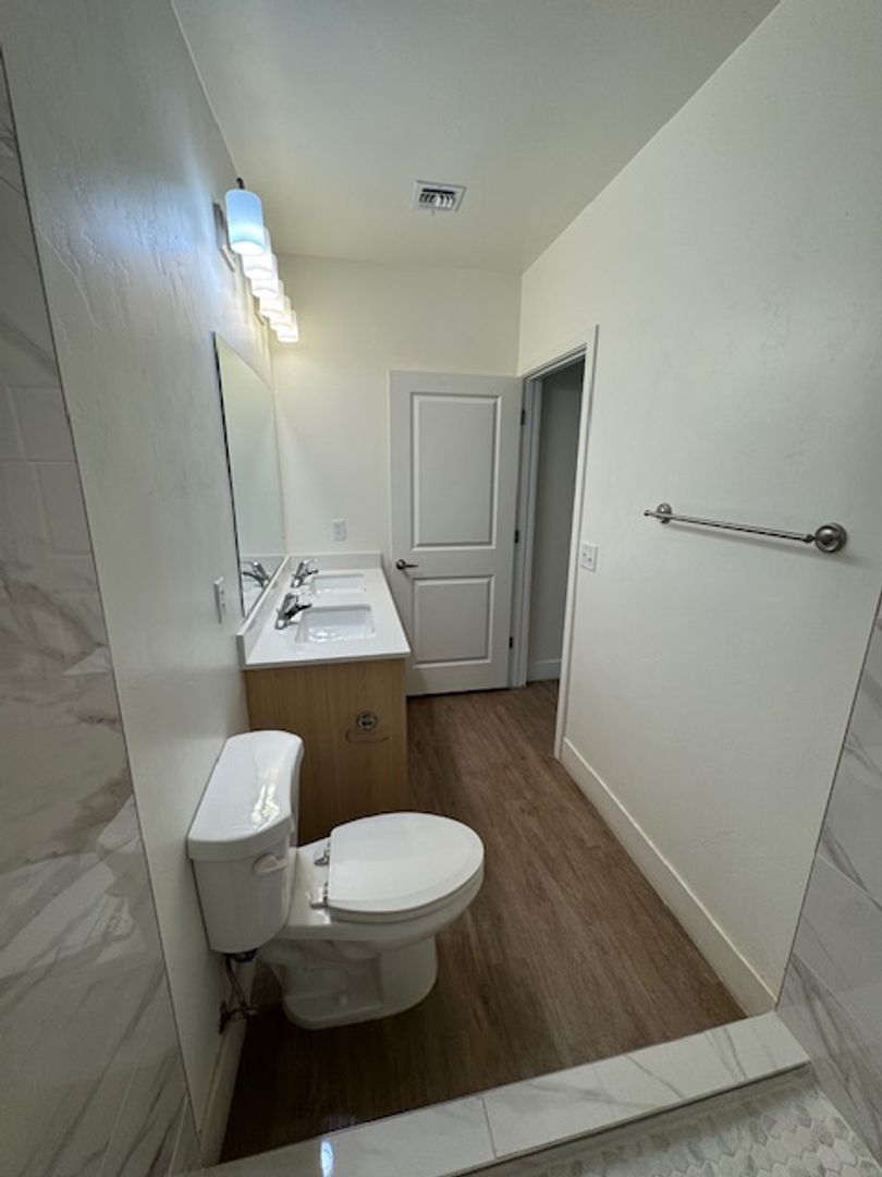 Walk in shower in master bathroom; tub/ shower in guest bathroom