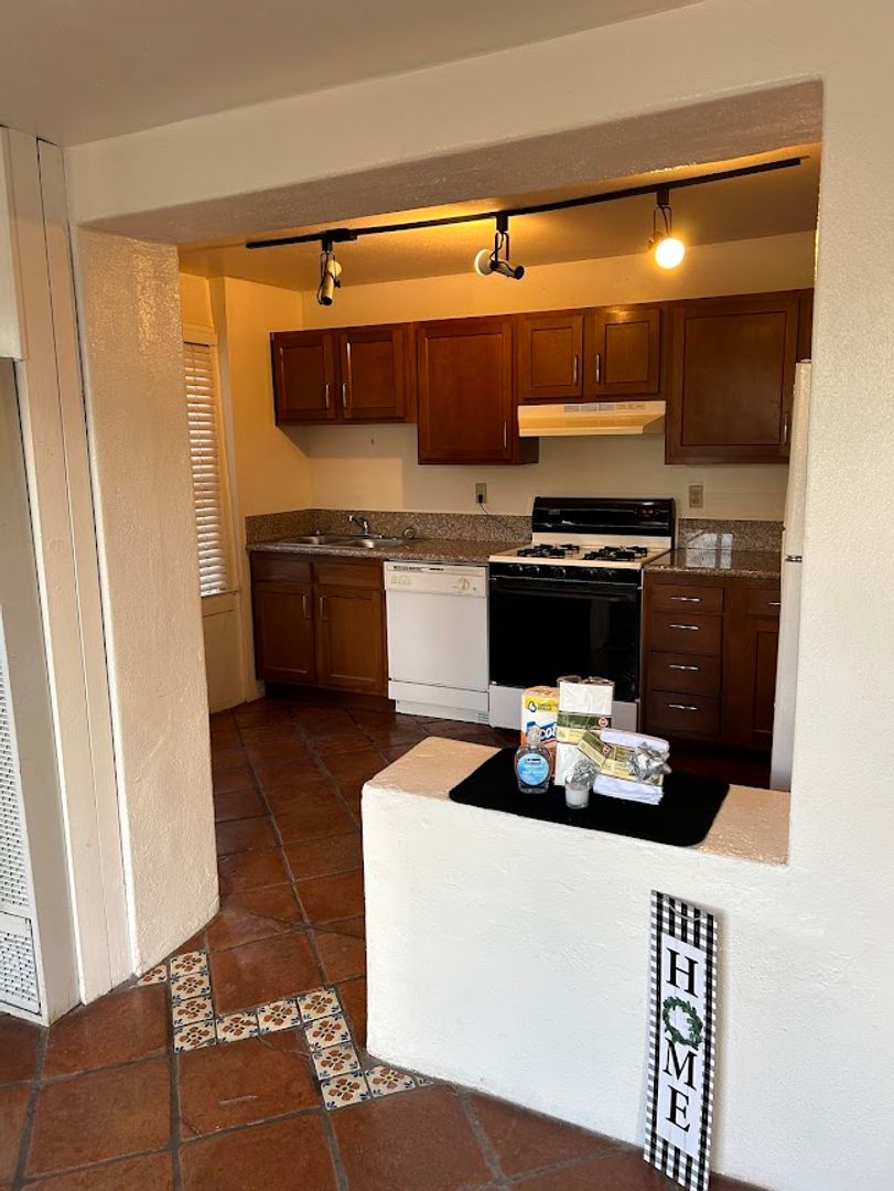 $500 MOVE-IN INCENTIVE! Single story studio townhome in tucked away community- Unit features fridge, gas stove, dishwasher and Saltillo tile floors throughout. Evaporative cooler, assigned carport space and front fenced in courtyard. Close to shopping, restaurants and U of A!