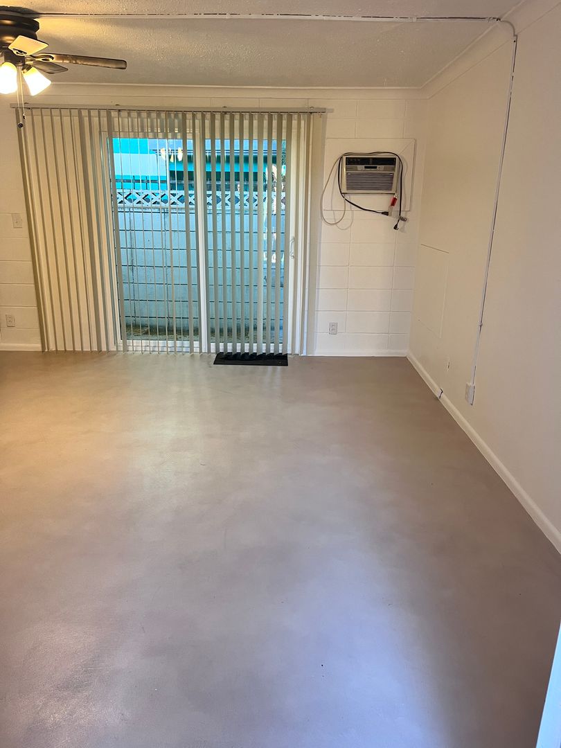 1 Bedroom/ 1 bathroom charming townhome- Features include: Single story unit, with A/C. Freshly painted, updated kitchen and new slider door! Onsite laundry for convenience. Stained concrete floors, ample storage inside and gated courtyard- MUST SEE!