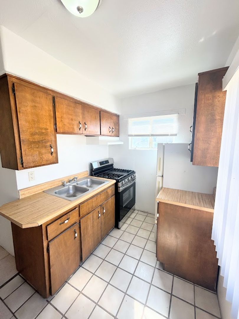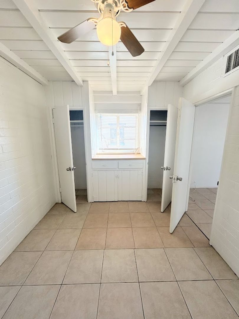 Large 1 bedroom/ 1 bathroom single story unit-features include: fridge & gas stove and all tile floors! Onsite coin laundry, lots of storage, walk in shower and evap cooling. Minutes from I-10, restaurants and across the street from E C Nash Elementary School!