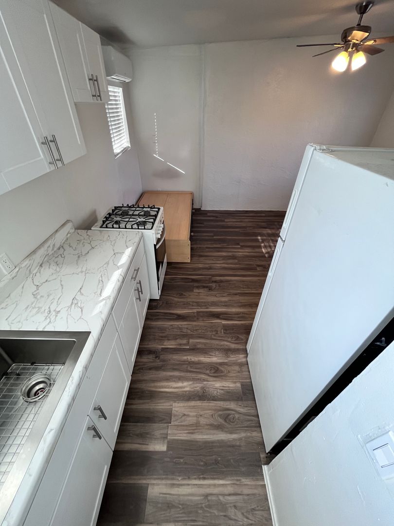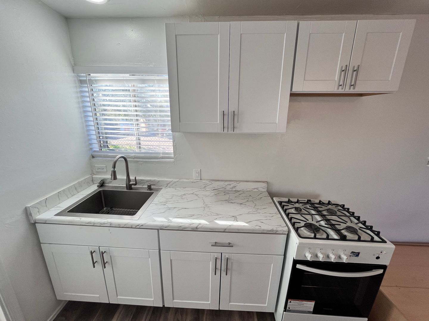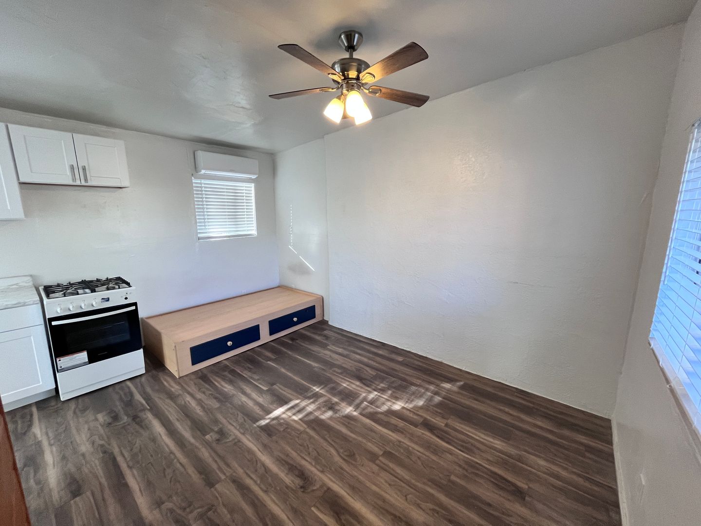 Studio/ 1 bathroom townhome- Features include: recently renovated single story unit, A/C, plank flooring, onsite coin laundry and gas range.