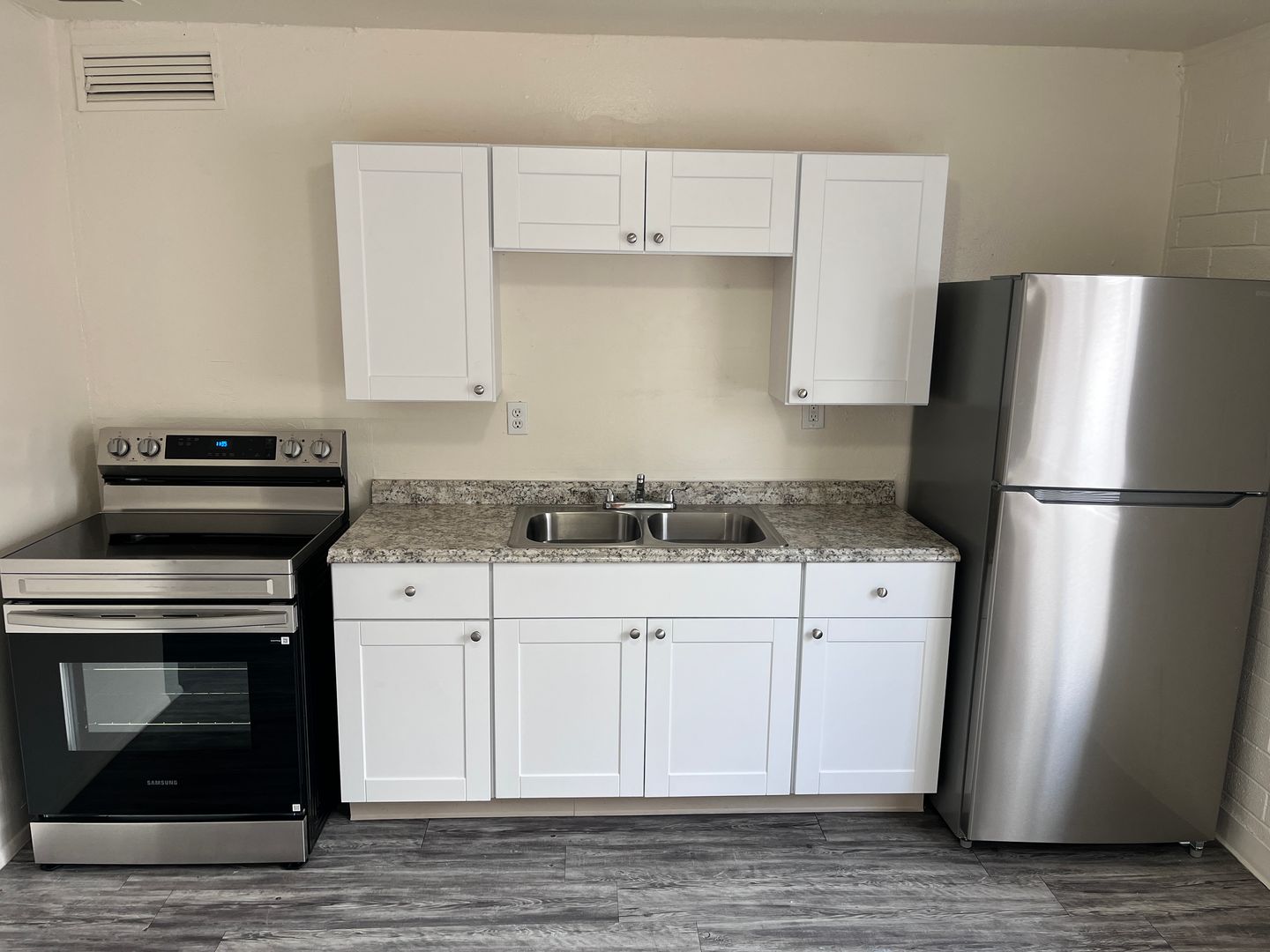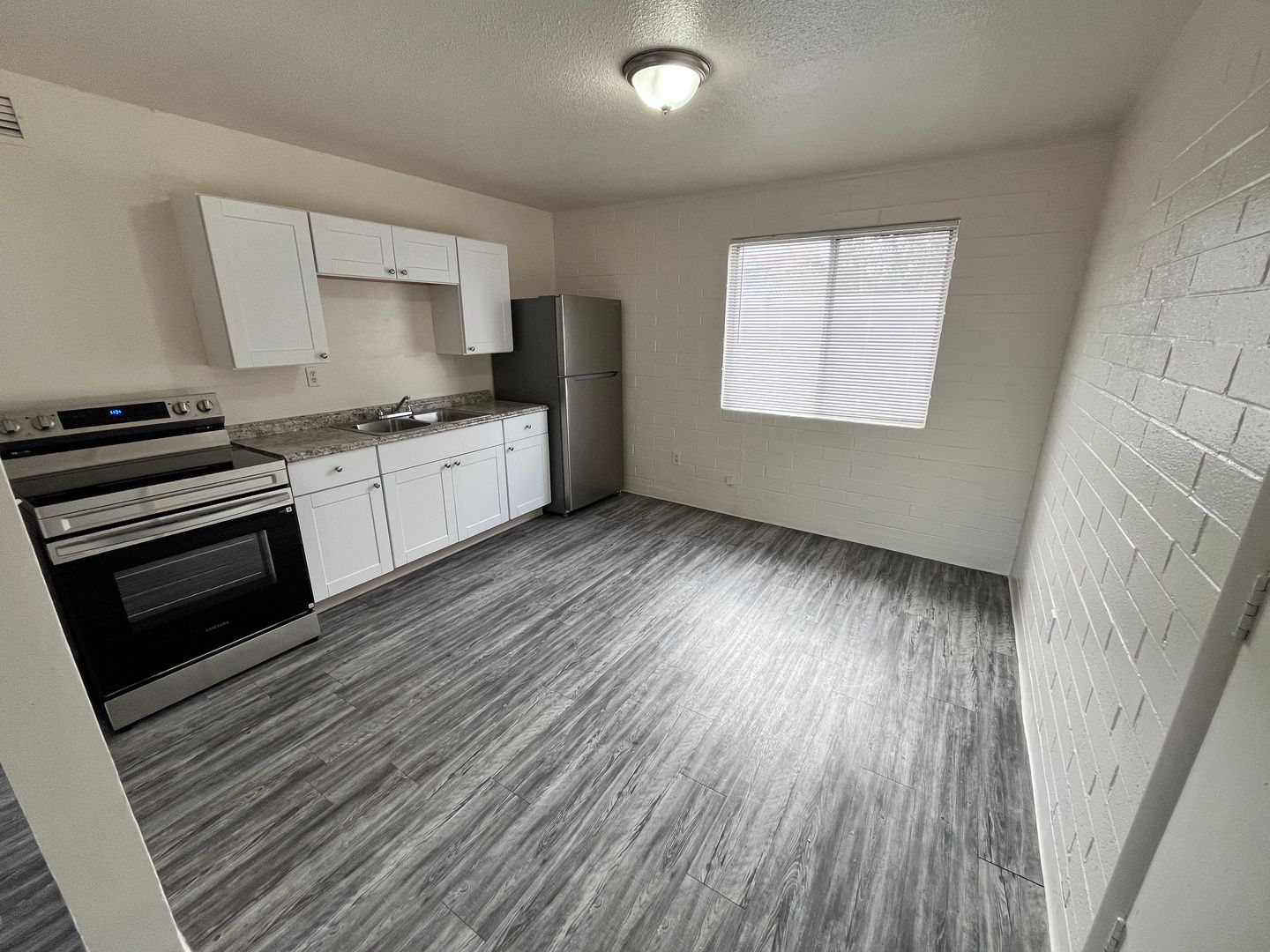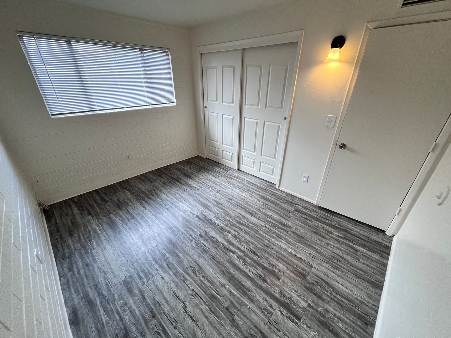 2 Bedroom/ 1 bathroom townhome- Features include: single story unit, A/C, all vinyl floors, large fenced yard, walk in shower, stainless steel appliances. Storage in private carport and large backyard perfect for animal!