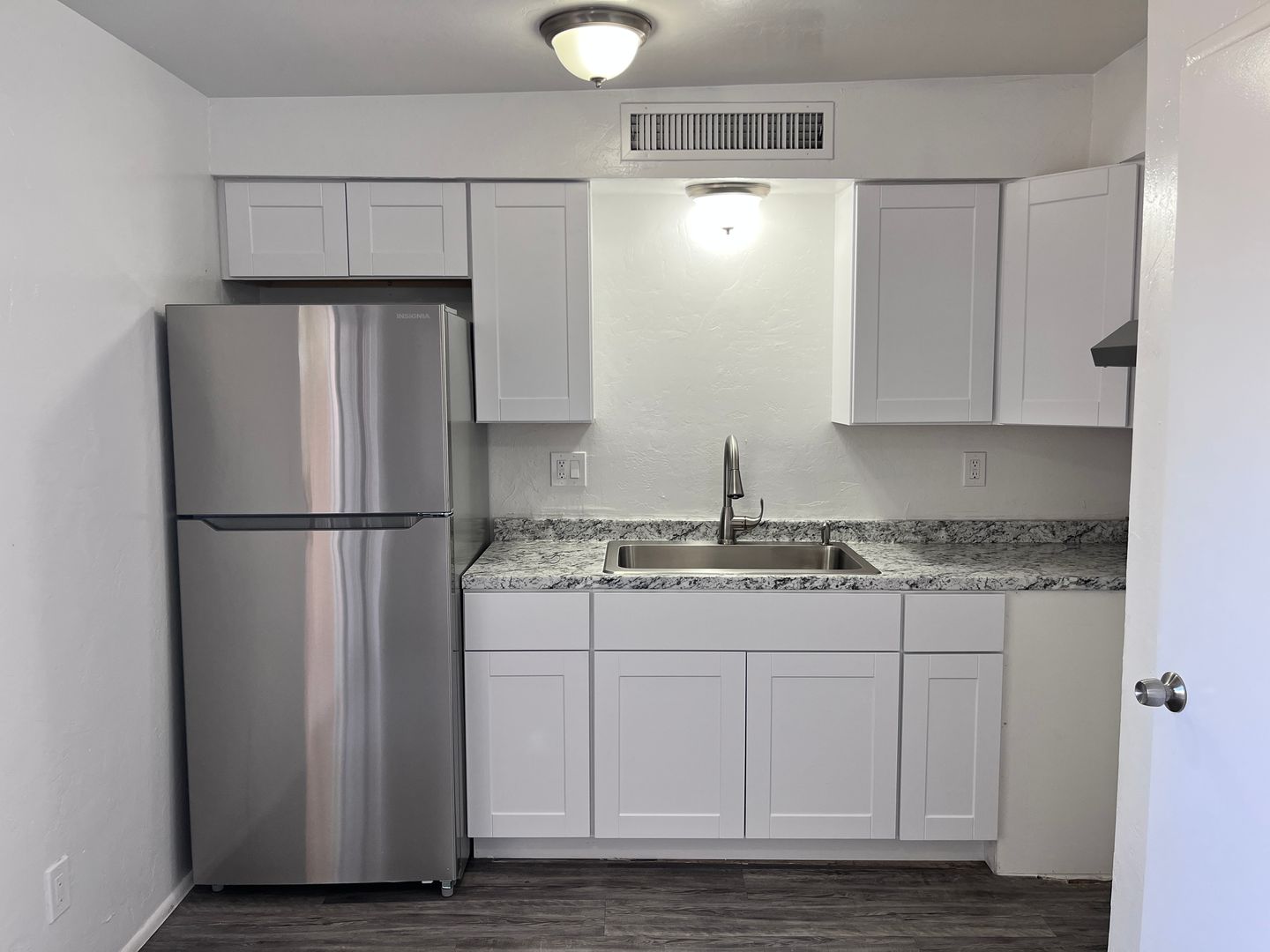 2 Bedroom/ 1 bathroom townhome- Features include: recently renovated single story unit, A/C, no carpet, onsite coin laundry, fenced yard, walk in shower, stainless steel appliances