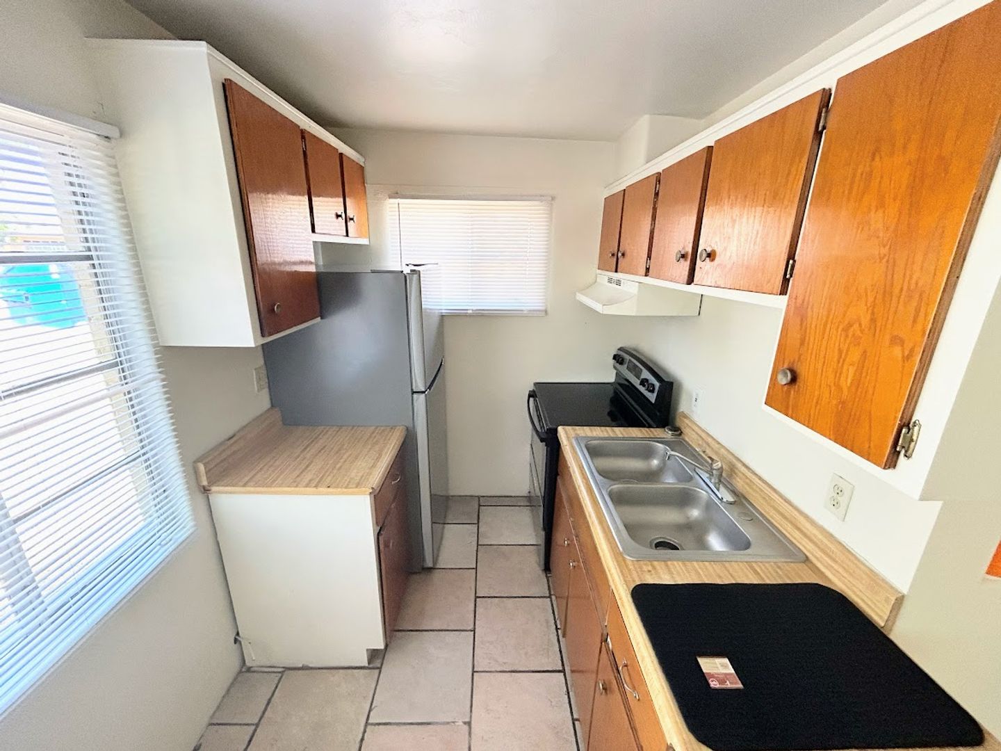 Renovated 1 bedroom/ 1 bathroom single story unit-features include: fridge & stove and no carpet! Onsite coin laundry and evap cooling. Minutes from I-10, restaurants and across the street from E C Nash Elementary School!